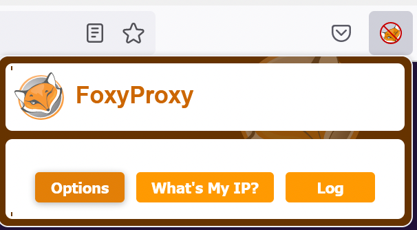 2. Next, click the FoxyProxy icon to open the quick activation menu, and select “Options” to modify the proxy settings.