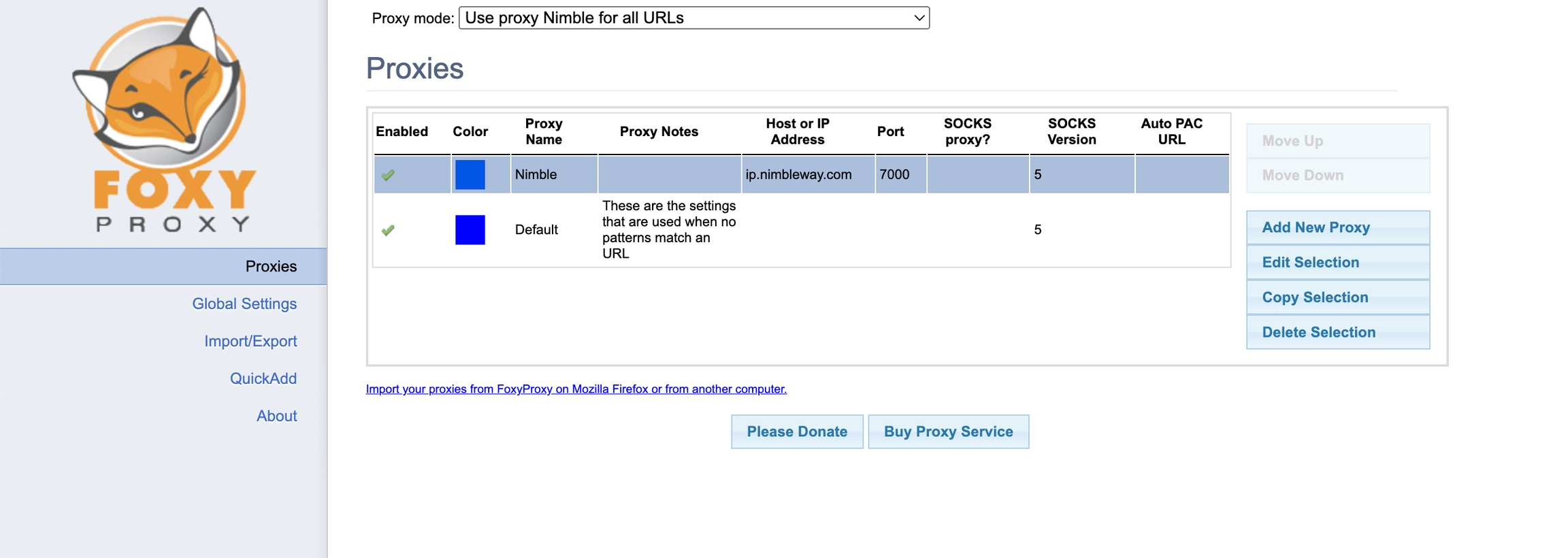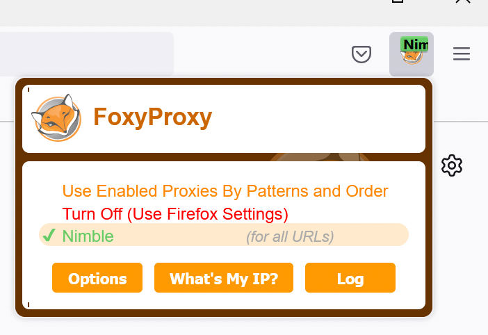 FoxyProxy is a simple and free browser extension that lets you easily use Nimble IP on Firefox or Chrome. While setting up your proxy server connection can be done without an extension, FoxyProxy provides a simple and flexible interface as well as additional options that browsers lack.