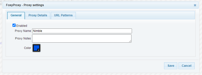 6. Go to the “General” tab and set a name for your Proxy (we used Nimble).