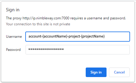 Chrome will prompt you for Nimble’s Backconnect proxy gateway credentials: