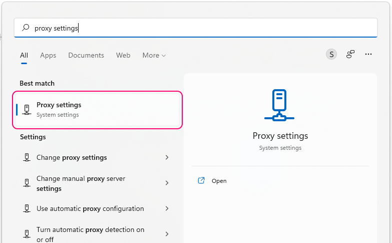 To get started, open “Proxy settings” on Windows - click the Windows key and search for “proxy settings”.